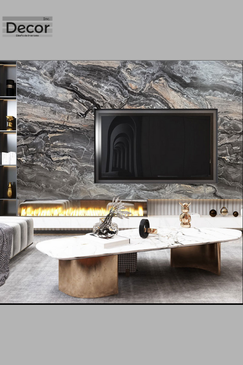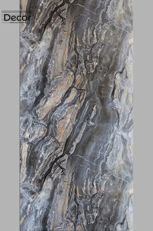 - Es un revestimiento decorativo que simula la apariencia del mármol natural, se crea mediante un proceso de impresión digital denominado hot stamping, donde se transfiere un diseño tipo mármol natural sobre paneles o láminas de material compuesto, como el PVC.